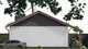 Стены дома выполнены из газобетона, что гарантирует их прочность и долговечность. Скатная кровля защищает дом от непогоды, обеспечивая надёжность конструкции. Отсутствие цокольного этажа упрощает строительство и обслуживание, делая проект более практичным и экономичным.